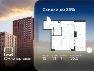 В северной части района Печатники продается 1-комнатный апартамент площадью 36.50 кв.м без отделки. Апартаменты расположены на 14 этаже 23-этажного корпуса 13 в жилом комплексе комфорт-класса Level Южнопортовая (компания Level Group/Левел групп).