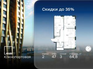 В северной части района Печатники продается 3-комнатная квартира площадью 64.80 кв.м без отделки. Квартира расположена на 47 этаже 47-этажного корпуса 2 в жилом комплексе комфорт-класса Level Южнопортовая (компания Level Group/Левел групп).