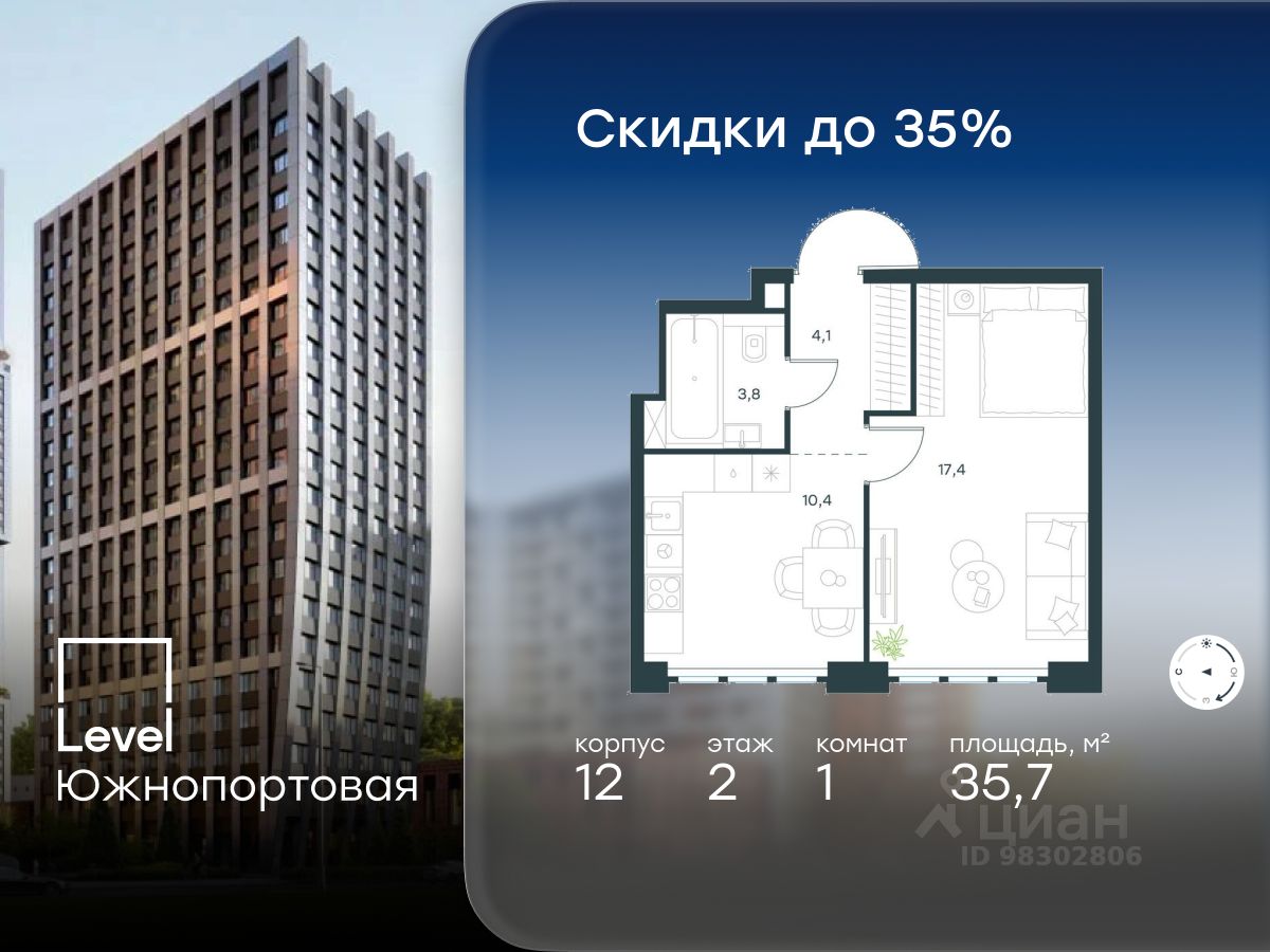 В северной части района Печатники продается 1-комнатная квартира площадью 35.70 кв.м без отделки. Квартира расположена на 2 этаже 20-этажного корпуса 12 в жилом комплексе комфорт-класса Level Южнопортовая (компания Level Group/Левел групп).