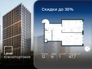 В северной части района Печатники продается 1-комнатная квартира площадью 47.70 кв.м без отделки. Квартира расположена на 6 этаже 20-этажного корпуса 12 в жилом комплексе комфорт-класса Level Южнопортовая (компания Level Group/Левел групп).