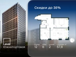 В северной части района Печатники продается 2-комнатная квартира площадью 57.80 кв.м без отделки. Квартира расположена на 6 этаже 20-этажного корпуса 12 в жилом комплексе комфорт-класса Level Южнопортовая (компания Level Group/Левел групп).