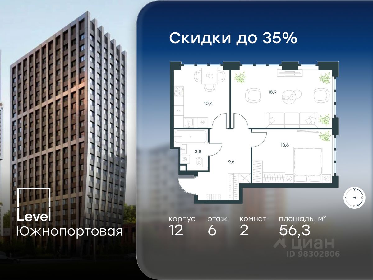 В северной части района Печатники продается 2-комнатная квартира площадью 56.30 кв.м без отделки. Квартира расположена на 6 этаже 20-этажного корпуса 12 в жилом комплексе комфорт-класса Level Южнопортовая (компания Level Group/Левел групп).