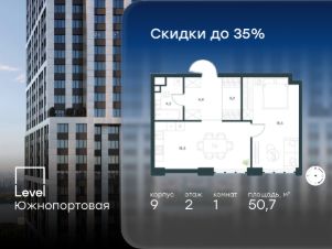 В северной части района Печатники продается 1-комнатная квартира площадью 50.70 кв.м с отделкой white box. Квартира расположена на 2 этаже 49-этажного корпуса 9 в жилом комплексе комфорт-класса Level Южнопортовая (компания Level Group/Левел групп).