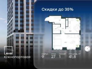В северной части района Печатники продается 1-комнатная квартира площадью 41.80 кв.м с отделкой white box. Квартира расположена на 27 этаже 49-этажного корпуса 9 в жилом комплексе комфорт-класса Level Южнопортовая (компания Level Group/Левел групп).