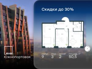 В северной части района Печатники продается 2-комнатная квартира площадью 50.50 кв.м с отделкой white box. Квартира расположена на 3 этаже 49-этажного корпуса 9 в жилом комплексе комфорт-класса Level Южнопортовая (компания Level Group/Левел групп).