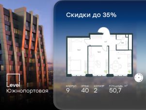 В северной части района Печатники продается 2-комнатная квартира площадью 50.70 кв.м с отделкой white box. Квартира расположена на 40 этаже 49-этажного корпуса 9 в жилом комплексе комфорт-класса Level Южнопортовая (компания Level Group/Левел групп).