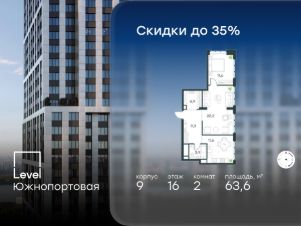 В северной части района Печатники продается 2-комнатная квартира площадью 63.60 кв.м с отделкой white box. Квартира расположена на 16 этаже 49-этажного корпуса 9 в жилом комплексе комфорт-класса Level Южнопортовая (компания Level Group/Левел групп).