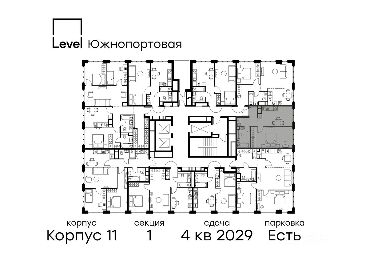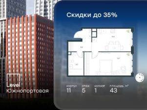 В северной части района Печатники продается 1-комнатная квартира площадью 43.00 кв.м без отделки. Квартира расположена на 5 этаже 16-этажного корпуса 11 в жилом комплексе комфорт-класса Level Южнопортовая (компания Level Group/Левел групп).