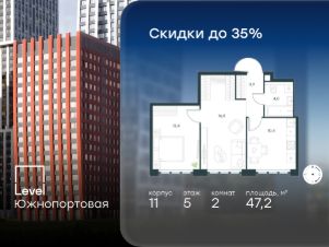 В северной части района Печатники продается 2-комнатная квартира площадью 47.20 кв.м без отделки. Квартира расположена на 5 этаже 16-этажного корпуса 11 в жилом комплексе комфорт-класса Level Южнопортовая (компания Level Group/Левел групп).