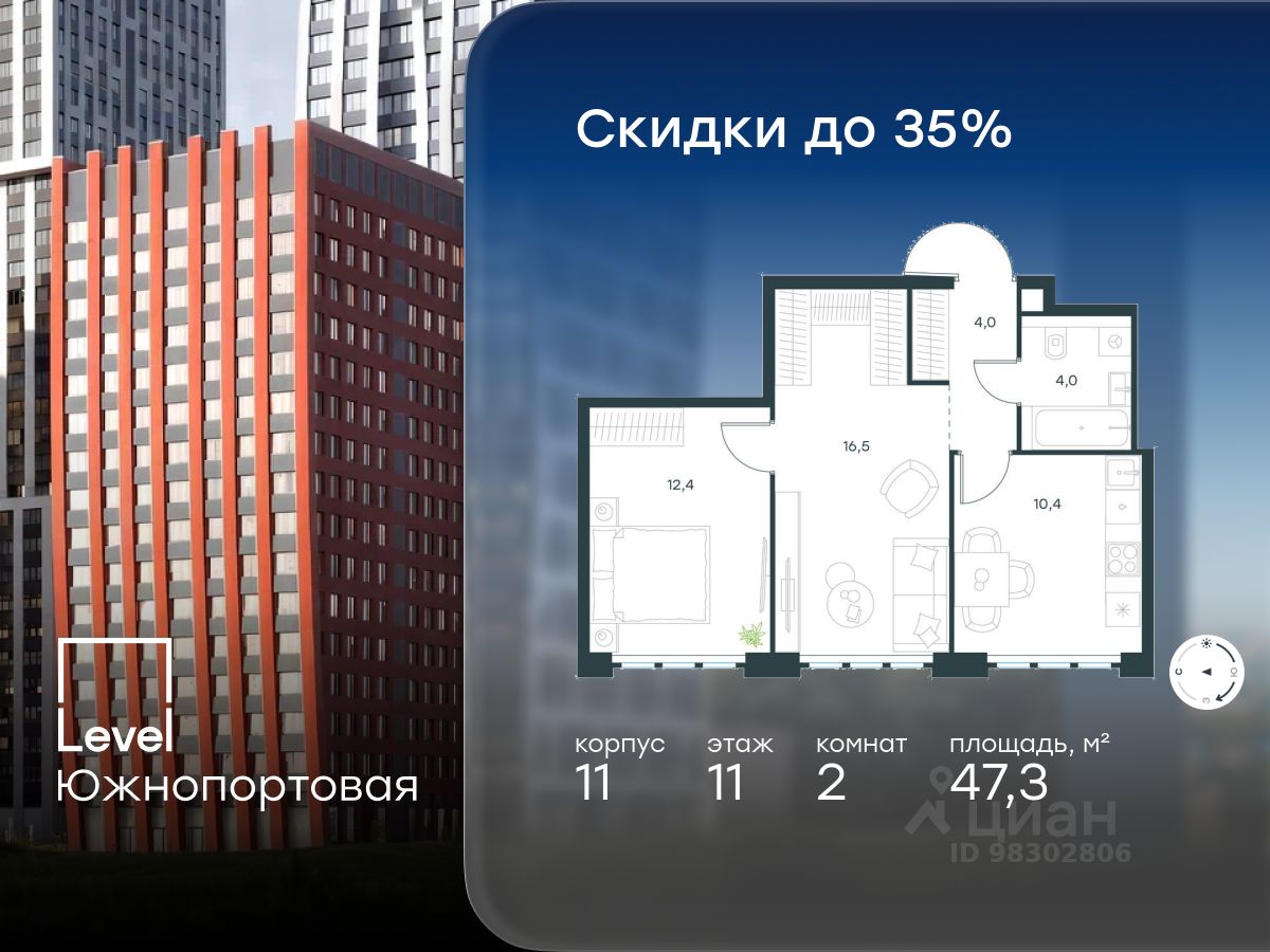 В северной части района Печатники продается 2-комнатная квартира площадью 47.30 кв.м без отделки. Квартира расположена на 11 этаже 16-этажного корпуса 11 в жилом комплексе комфорт-класса Level Южнопортовая (компания Level Group/Левел групп).