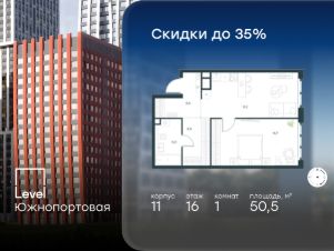 В северной части района Печатники продается 1-комнатная квартира площадью 50.50 кв.м без отделки. Квартира расположена на 16 этаже 16-этажного корпуса 11 в жилом комплексе комфорт-класса Level Южнопортовая (компания Level Group/Левел групп).