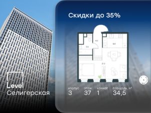 В жилом квартале, расположенном в южной части района Западное Дегунино, продаётся 1-комнатная квартира площадью 34.50 кв.м без отделки. Квартира расположена на 37 этаже 40-этажного корпуса 3 в жилом комплексе комфорт-класса Level Селигерская (компания Level Group/Левел групп).