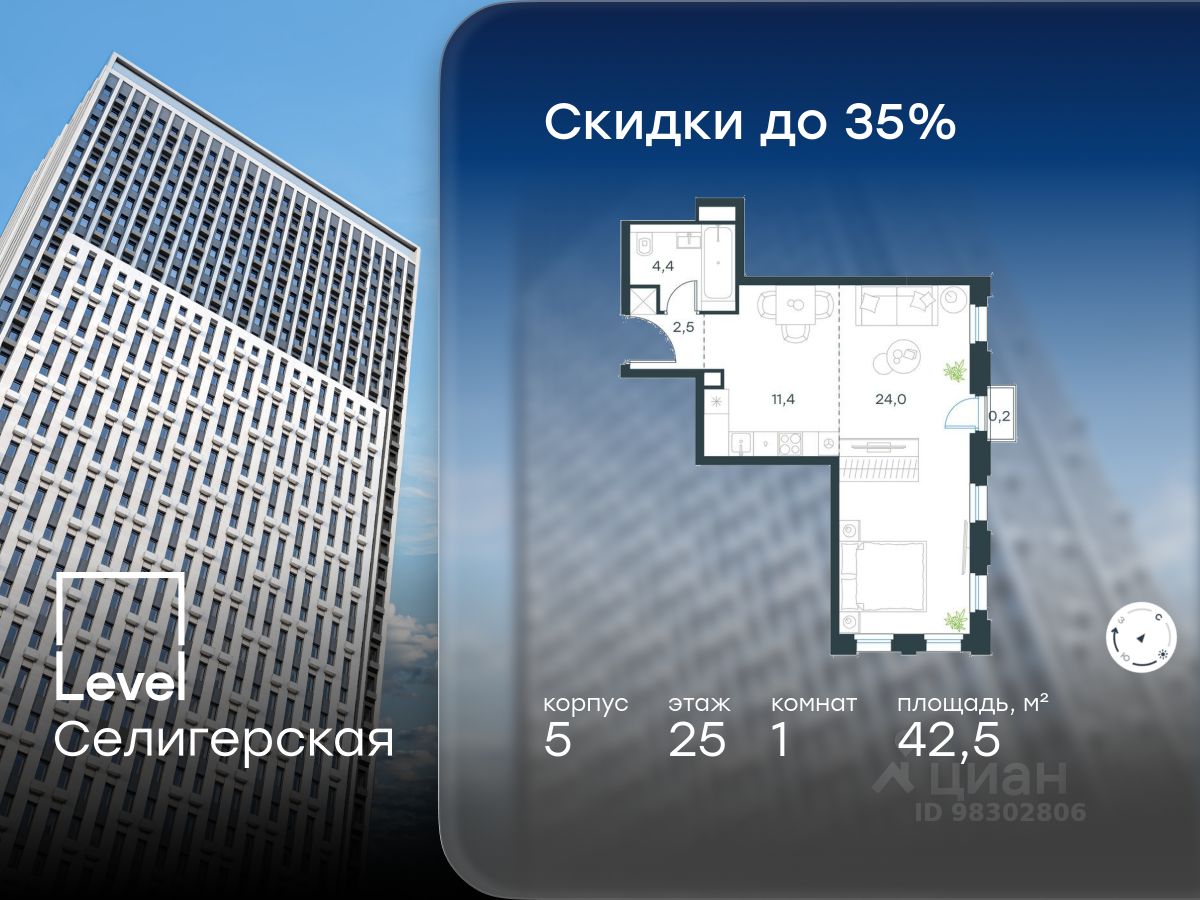 В жилом квартале, расположенном в южной части района Западное Дегунино, продаётся 1-комнатная квартира площадью 42.50 кв.м без отделки. Квартира расположена на 25 этаже 40-этажного корпуса 5 в жилом комплексе комфорт-класса Level Селигерская (компания Level Group/Левел групп).