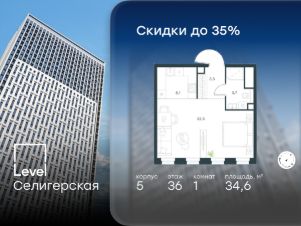 В жилом квартале, расположенном в южной части района Западное Дегунино, продаётся 1-комнатная квартира площадью 34.60 кв.м без отделки. Квартира расположена на 36 этаже 40-этажного корпуса 5 в жилом комплексе комфорт-класса Level Селигерская (компания Level Group/Левел групп).