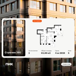 Новостройка! Продается 2-комн. кв-ра площадью 63,8 кв.м, (Корпус 1.1.2, Секция 2) 5 этаж 10-этажного дома в Строгино 360 от ПИК. Проект, где каждый день будет наполнен гармонией и новыми возможностями, где можно найти идеальный баланс между энергией большого города и спокойствием природного окружения. Это настоящая экосистема в окружении четырех парков и набережной Москвы-реки, где современная архитектура, умные технологии и продуманная среда создают новое качество жизни.