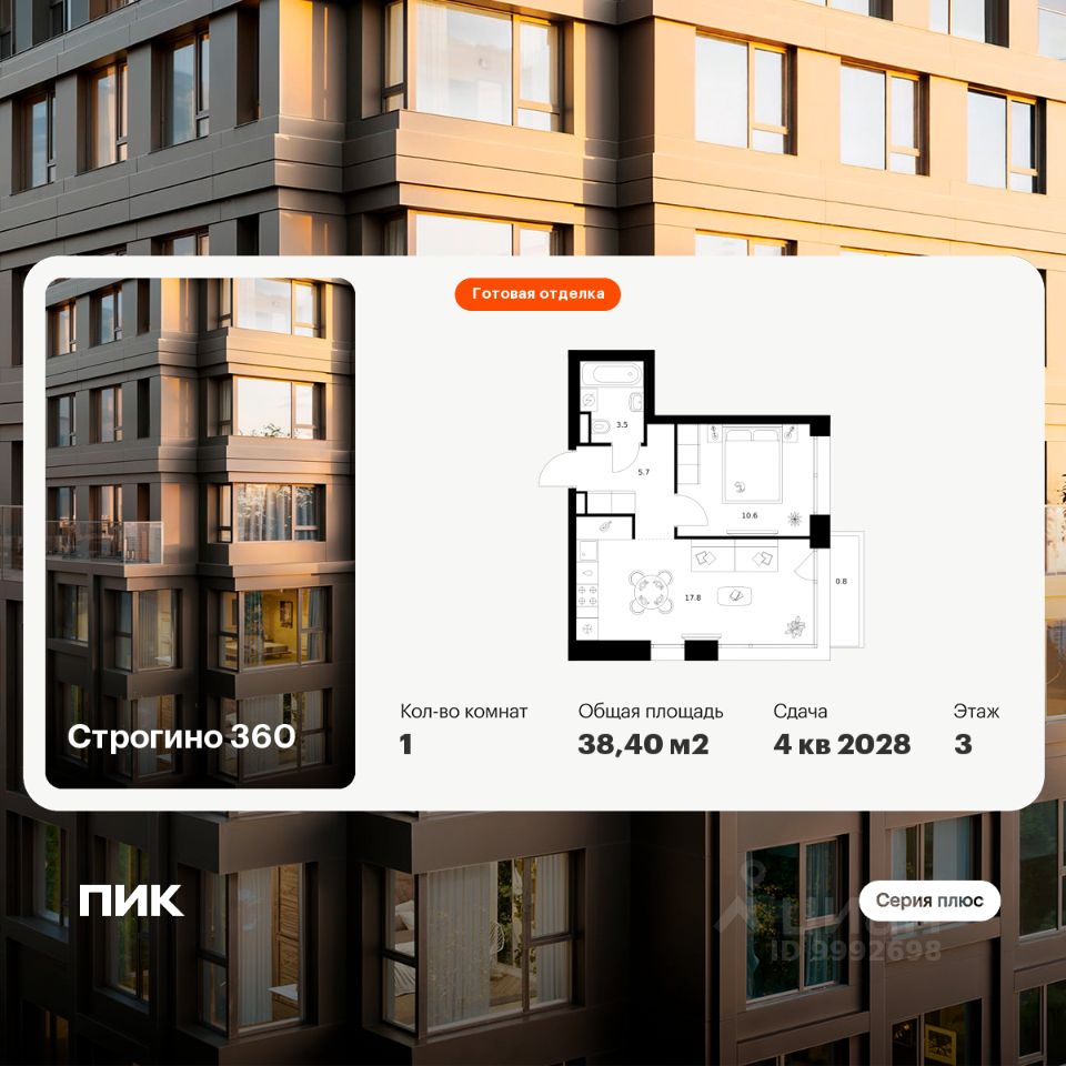Новостройка! Продается 1-комн. кв-ра площадью 38,4 кв.м, (Корпус 1.1.3, Секция 3) 3 этаж 10-этажного дома в Строгино 360 от ПИК. Проект, где каждый день будет наполнен гармонией и новыми возможностями, где можно найти идеальный баланс между энергией большого города и спокойствием природного окружения. Это настоящая экосистема в окружении четырех парков и набережной Москвы-реки, где современная архитектура, умные технологии и продуманная среда создают новое качество жизни.