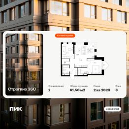 Новостройка! Продается 2-комн. кв-ра площадью 61,5 кв.м, (Корпус 1.2, Секция 1) 8 этаж 30-этажного дома в Строгино 360 от ПИК. Проект, где каждый день будет наполнен гармонией и новыми возможностями, где можно найти идеальный баланс между энергией большого города и спокойствием природного окружения. Это настоящая экосистема в окружении четырех парков и набережной Москвы-реки, где современная архитектура, умные технологии и продуманная среда создают новое качество жизни.