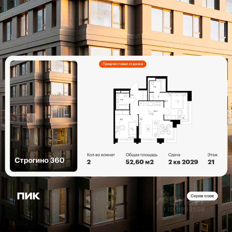 Новостройка! Продается 2-комн. кв-ра площадью 52,6 кв.м, (Корпус 1.2, Секция 1) 21 этаж 30-этажного дома в Строгино 360 от ПИК. Проект, где каждый день будет наполнен гармонией и новыми возможностями, где можно найти идеальный баланс между энергией большого города и спокойствием природного окружения. Это настоящая экосистема в окружении четырех парков и набережной Москвы-реки, где современная архитектура, умные технологии и продуманная среда создают новое качество жизни.