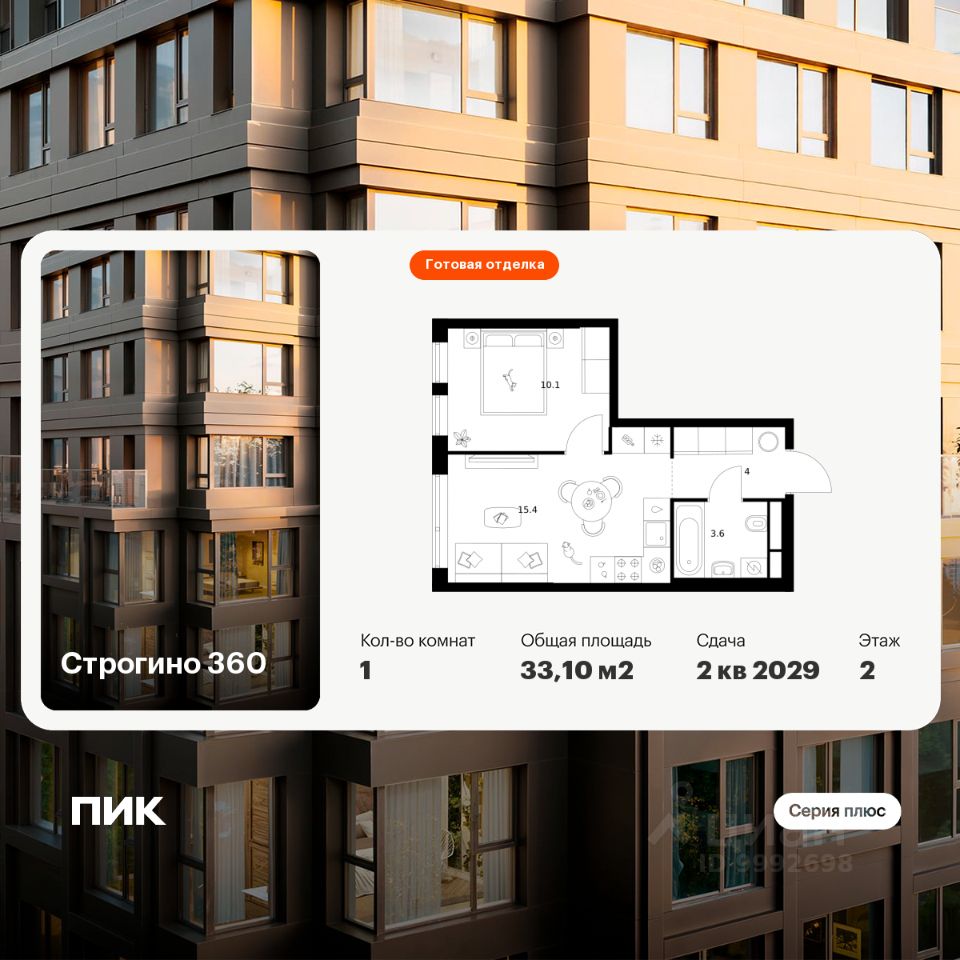 Новостройка! Продается 1-комн. кв-ра площадью 33,1 кв.м, (Корпус 1.2, Секция 1) 2 этаж 30-этажного дома в Строгино 360 от ПИК. Проект, где каждый день будет наполнен гармонией и новыми возможностями, где можно найти идеальный баланс между энергией большого города и спокойствием природного окружения. Это настоящая экосистема в окружении четырех парков и набережной Москвы-реки, где современная архитектура, умные технологии и продуманная среда создают новое качество жизни.