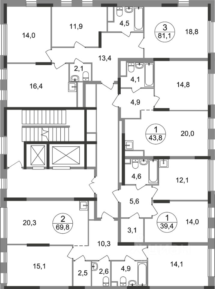 Корпус расположен в новой 13 фазе строительства и состоит из 8 секций с переменной этажностью 12-17 этажей. Все секции без отделки.