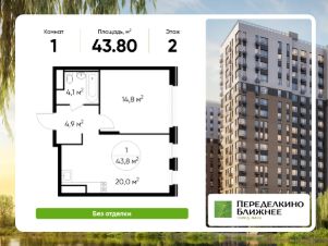 Общая площадь квартиры - 43,8 кв. м, этаж 2 из 17.