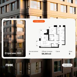 Новостройка! Продается 2-комн. кв-ра площадью 56,8 кв.м, (Корпус 1.1.1, Секция 1) 5 этаж 10-этажного дома в Строгино 360 от ПИК. Проект, где каждый день будет наполнен гармонией и новыми возможностями, где можно найти идеальный баланс между энергией большого города и спокойствием природного окружения. Это настоящая экосистема в окружении четырех парков и набережной Москвы-реки, где современная архитектура, умные технологии и продуманная среда создают новое качество жизни.