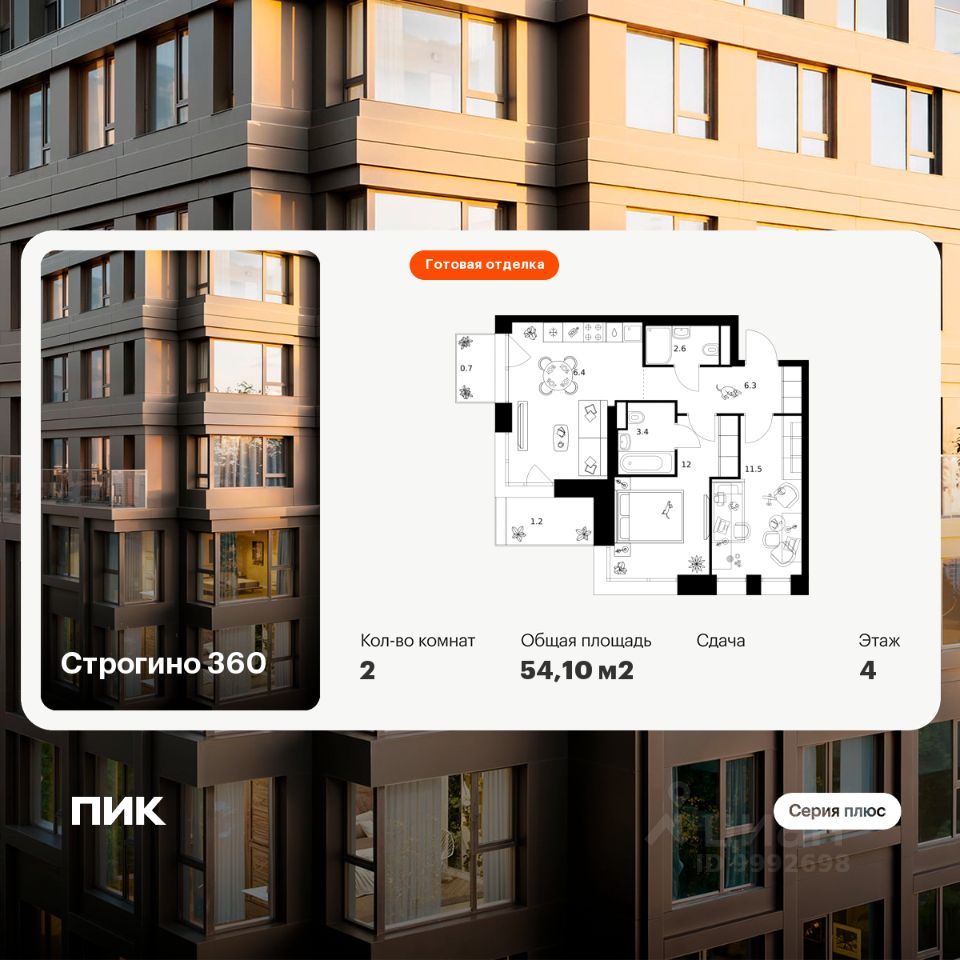 Новостройка! Продается 2-комн. кв-ра площадью 54,1 кв.м, (Корпус 1.1.1, Секция 1) 4 этаж 10-этажного дома в Строгино 360 от ПИК. Проект, где каждый день будет наполнен гармонией и новыми возможностями, где можно найти идеальный баланс между энергией большого города и спокойствием природного окружения. Это настоящая экосистема в окружении четырех парков и набережной Москвы-реки, где современная архитектура, умные технологии и продуманная среда создают новое качество жизни.