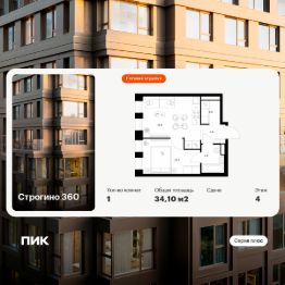 Новостройка! Продается 1-комн. кв-ра площадью 34,1 кв.м, (Корпус 1.1.1, Секция 1) 4 этаж 10-этажного дома в Строгино 360 от ПИК. Проект, где каждый день будет наполнен гармонией и новыми возможностями, где можно найти идеальный баланс между энергией большого города и спокойствием природного окружения. Это настоящая экосистема в окружении четырех парков и набережной Москвы-реки, где современная архитектура, умные технологии и продуманная среда создают новое качество жизни.