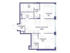 Продаётся двухкомнатная квартира от застройщика: общая площадь 70.30 м², жилая 25.20 м², кухня 22.20 м², 12, жилой квартал "Остров 12", корпус 3 (12.1 квартал) (секция 1). срок сдачи: 4-кв. 2025.
