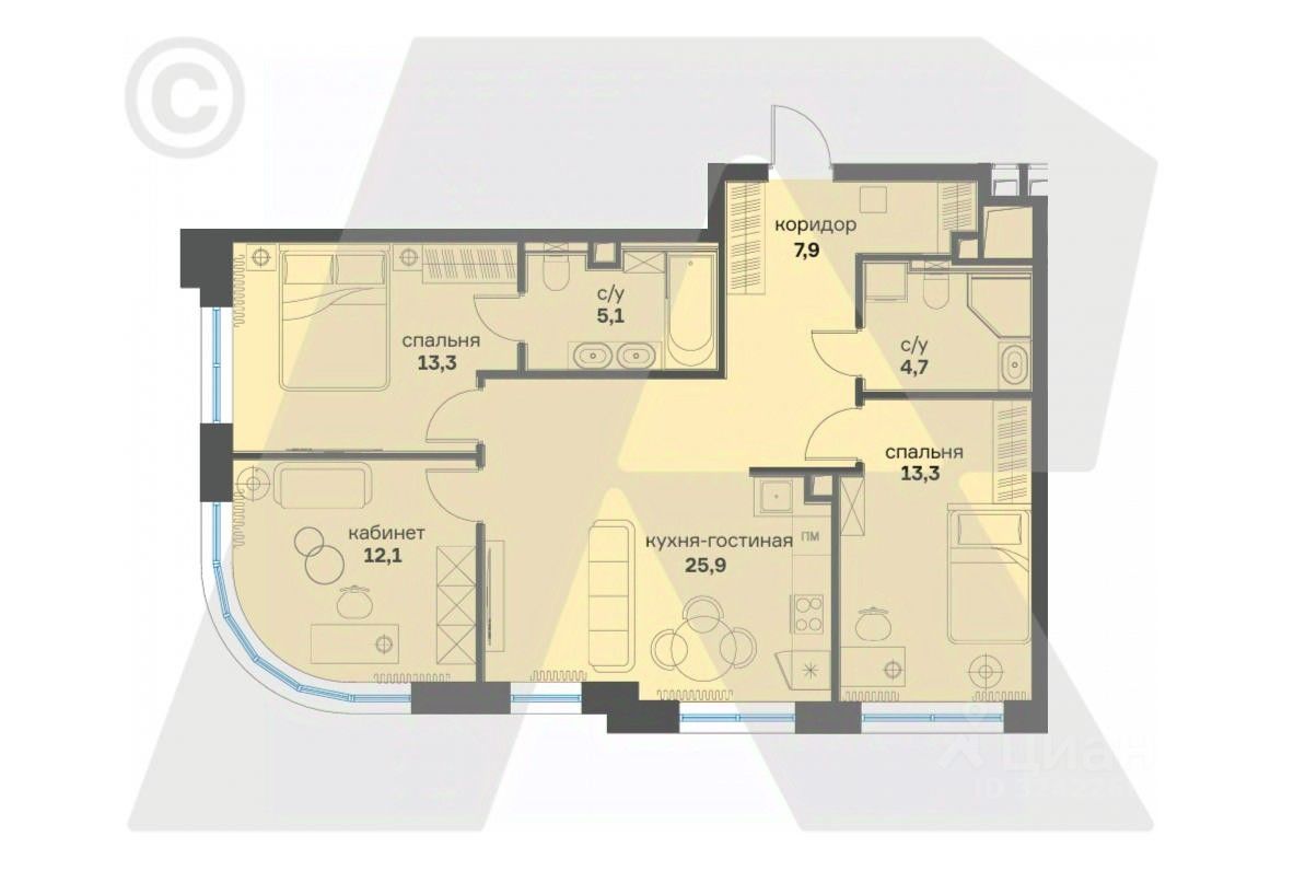 Предлагается квартира с шикарной планировкой с видами в Парк Олимпийской деревни!