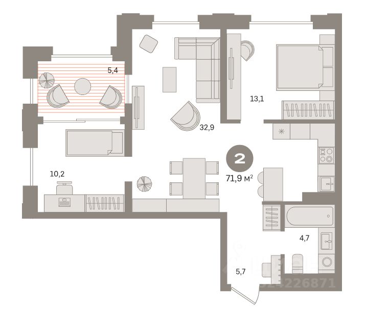 Квартира с кухней-гостиной и двумя спальнями в квартале МОНС