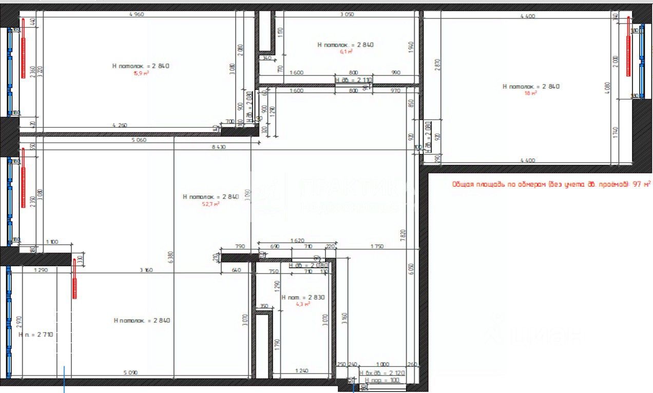 По документам общая площадь квартиры 93,3 кв. м.. Вместе с площадью лоджии площадь составляет 97 кв. м. Просторная, светлая квартира с возможностью установки разной мебели, большого шкафа-купе в прихожей, и огромной гостиной переходящей в функциональную кухню, в которой на всю стену планировался монтаж настенной плитки Чёрный мрамор (имеется в наличии). К кухне присоединена лоджия, в которой в пол вмонтирована система тёплых полов и панорамный стеклопакет особой прочности фирмы Rehau. В спальне 16 кв. м., в стене изготовлена ниша для гардероба. Третья комната 18 кв. м. с окнами во двор предназначалась для кинозала, в ней можно запланировать детскую комнату. Во всех комнатах установлены новые подоконники фирмы Miller, а также выходы для установки радиаторов отопления марки Royal Biliner. Имеются два санузла, в одном из них предназначена установка стиральной машины и сушильной машины.