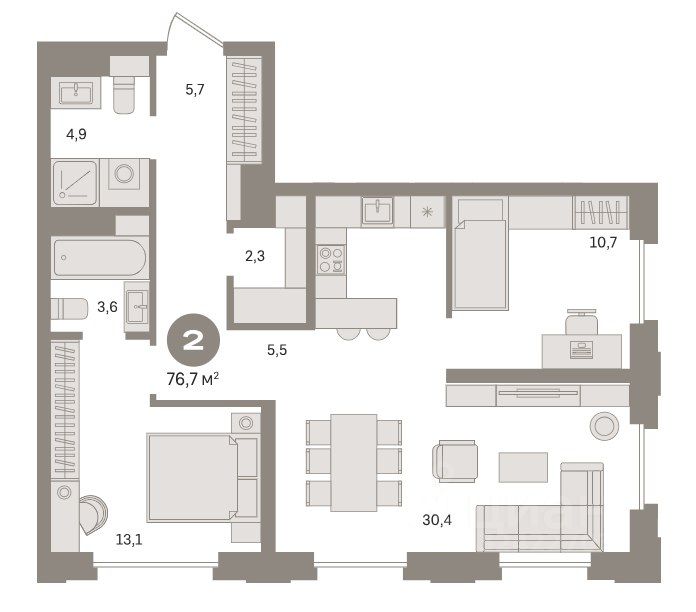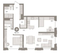 Квартира с кухней-гостиной и двумя спальнями в квартале МОНС