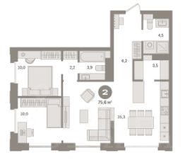 Квартира с кухней-гостиной и двумя спальнями в квартале МОНС