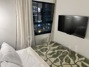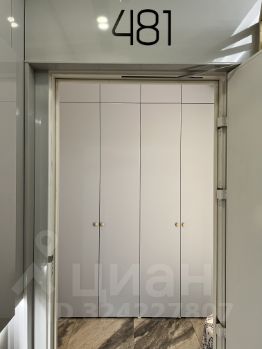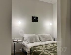 Из небольшой гостиной можно попасть в совершенно отдельную зону спальни, с крупным шкафом для самых смелых гардеробов даже в такой маленькой квартире.
