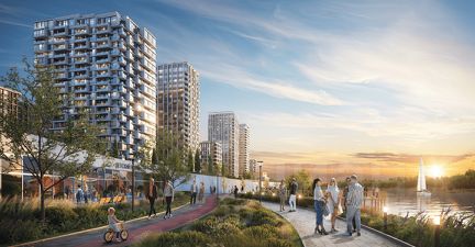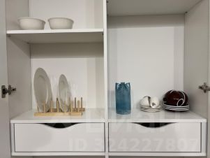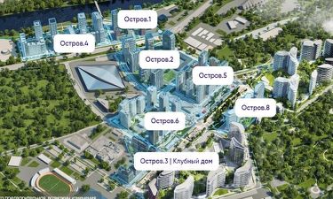Квартира расположена в квартале бизнес класса Остров 1 от Донстрой, гармонично вписывается в общую архитектурную концепцию проекта, включая стиль общественных пространств.