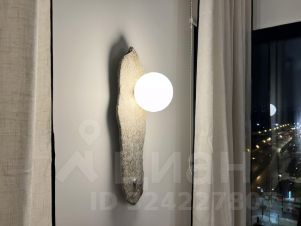 Всё освещение в квартире выполнено на заказ, по индивидуальным размерам и подобранным цветам. Каменный светильник гостиной является исключительно уникальным предметом дизайна, придуманный автором для данного проекта.