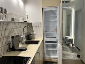 Это жилое пространство для ценителей изысканного минимализма, где компактность превращается в преимущество, а каждый элемент — от текстурных акцентов до персонализированного освещения — создает атмосферу гармонии и вдохновения, идеально подходящую для динамичной городской жизни.