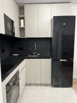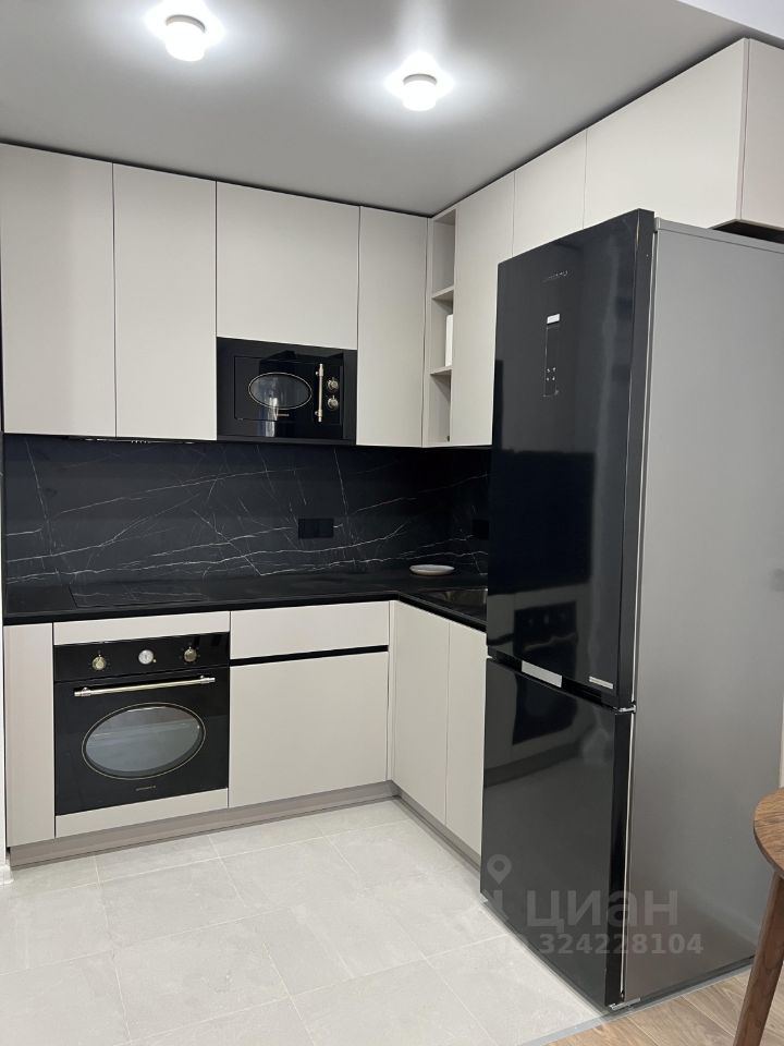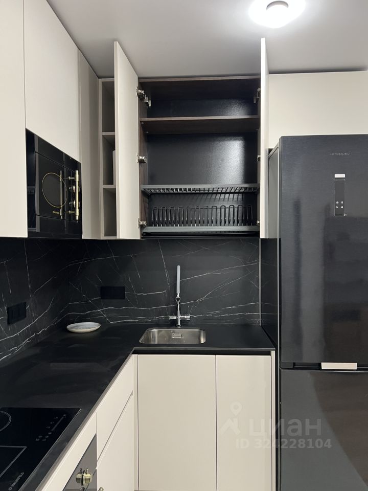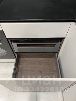 -встроенная стильная кухня, оборудована техникой: холодильник, духовка, микроволновка, вытяжка.