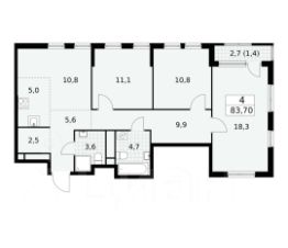 Четырёхкомнатная (евро) квартира в ЖК Южные сады от застройщика ГК А101