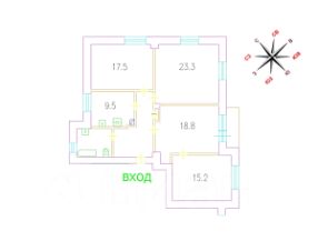 Проходная комната (18,8 м2) с застеклённым балконом, за ней спальня (15,2 м2). И две большие изолированные комнаты (17,5 и 23,3 м2).