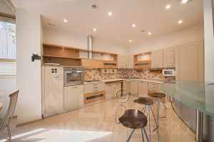 Гостиная 54 кв.м. кухня-столовая 25 кв.м., 2 изолированные спальни. 2,5 сан.узла, 3 балкона, 3 гардеробные комнаты.