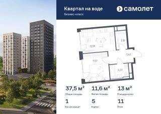 Строим кварталы для жизни с заботой о будущем. Предлагается 1-комнатная квартира бизнес-класса 37,51 кв.м в корпусе 5 на 11 этаже, в ЖК "Квартал на воде"