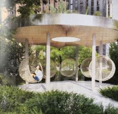 Имеется зона активности для сторонников здорового образа жизни с тренажерами. Так же предусмотрено место для спокойного отдыха с кофе.