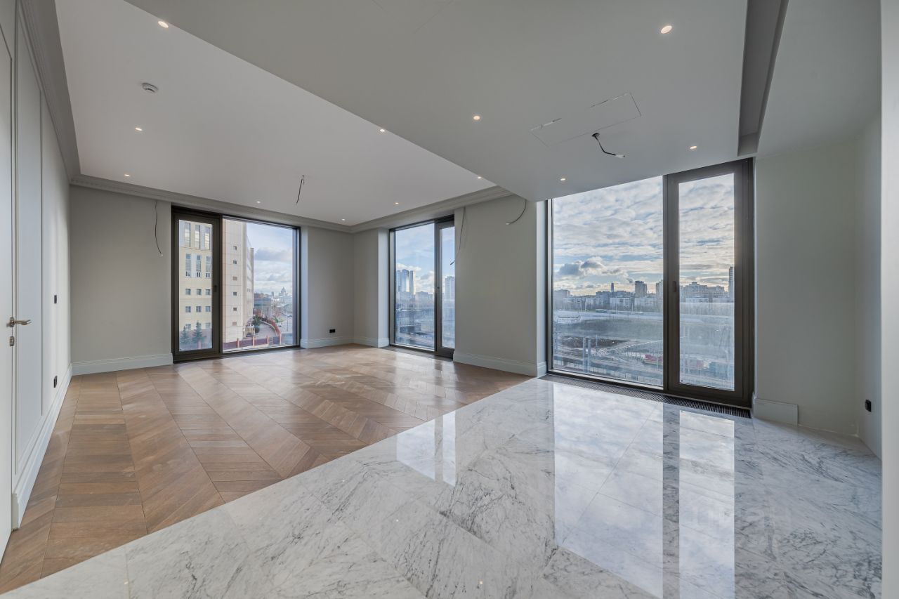 В жилом комплексе Victory Park Residences предлагается трехкомнатная квартира с ремонтом в стиле Neo classic. Планировка: кухня-гостиная-столовая, две спальни, две ванные комнаты, гардеробные.