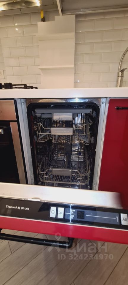 В Кухне стоит новый 2х цветный гарнитур со встроенное техникой zigmund&shtain ,также есть вытяжка электр, духовка электр, посудомойка, газ плита 3 секции, встроенный холодильник и морозильная камера.