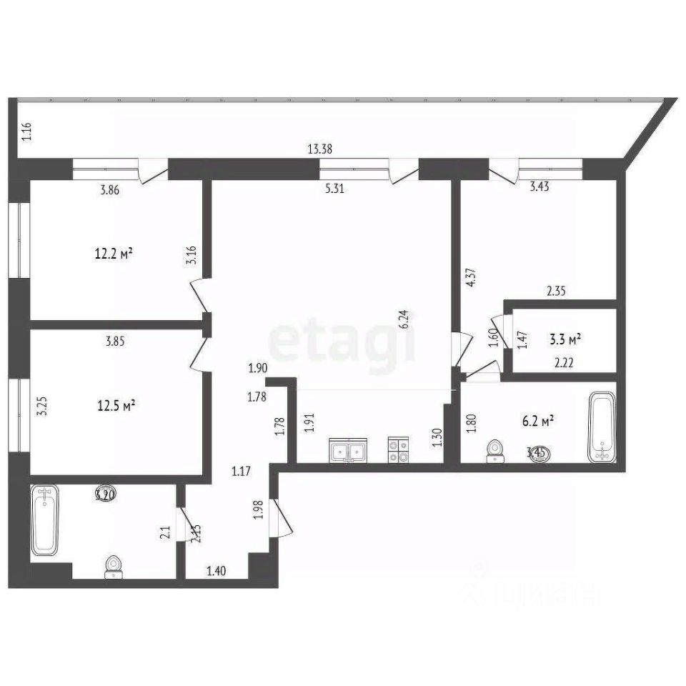 В квартире так же есть общий санузел более 6м.