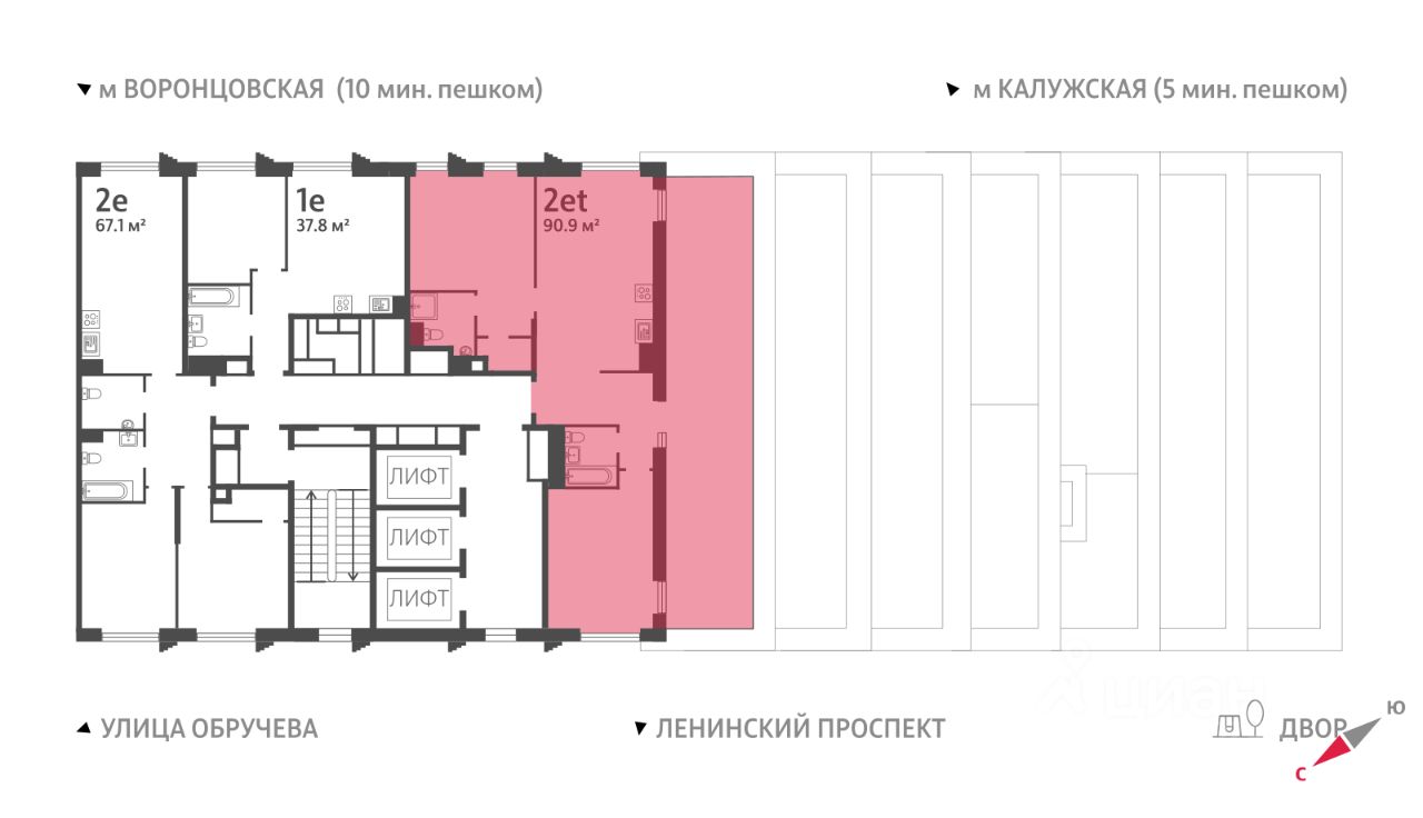 Продается 2-комнатная квартира общей площадью 90.9 кв. метров на 21 этаже дома бизнес-класса "Обручева 30". Дом располагается в 5 минутах ходьбы до станции метро "Калужская" и 10 минутах до станции метро "Воронцовская". Для автомобилистов удобный и быстрый выезд на улицы Обручева и Профсоюзную.