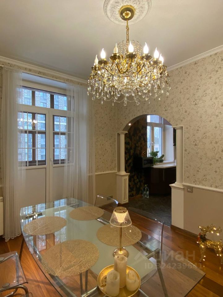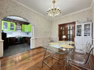 Квартира расположена на 3-м этаже сталинского дома, обладает пятью окнами и двумя балконами, выходящими на две стороны. Высокие потолки создают дополнительное ощущение простора и свободы. В квартире грамотная планировка: четыре изолированных комнаты, кухня совмещена с гостиной, просторная совмещенная ванная комната. Квартира оборудована всем необходимым для удобного и приятного проживания.