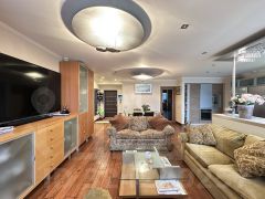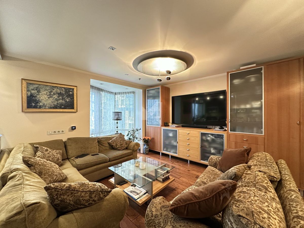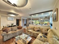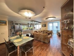 Функциональная планировка: две изолированные спальни одна из них с ванной и гардеробной комнатой, светлая кухня-гостиная с встроенной техникой. Два санузла: один с ванной, другой с душевой. Две вместительные гардеробные для хранения вещей, хозяйственный блок с постирочной. Вся встроенная мебель остаётся новым владельцам.